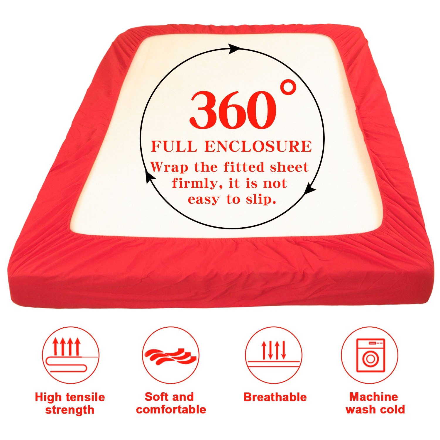 超细纤维床笠,超柔软耐用,抗皱、防褪色、防污渍,深口袋设计,红色