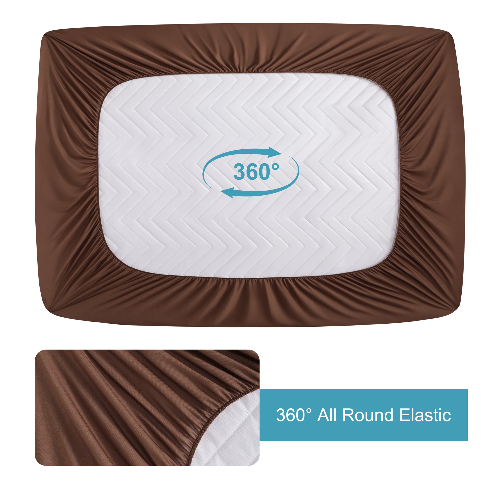 Waterproof Fitted Mattress Protector - Quilted Mattress Cover with 15" Deep Pocket, Soft and Breathable, Machine Washable, Coffee