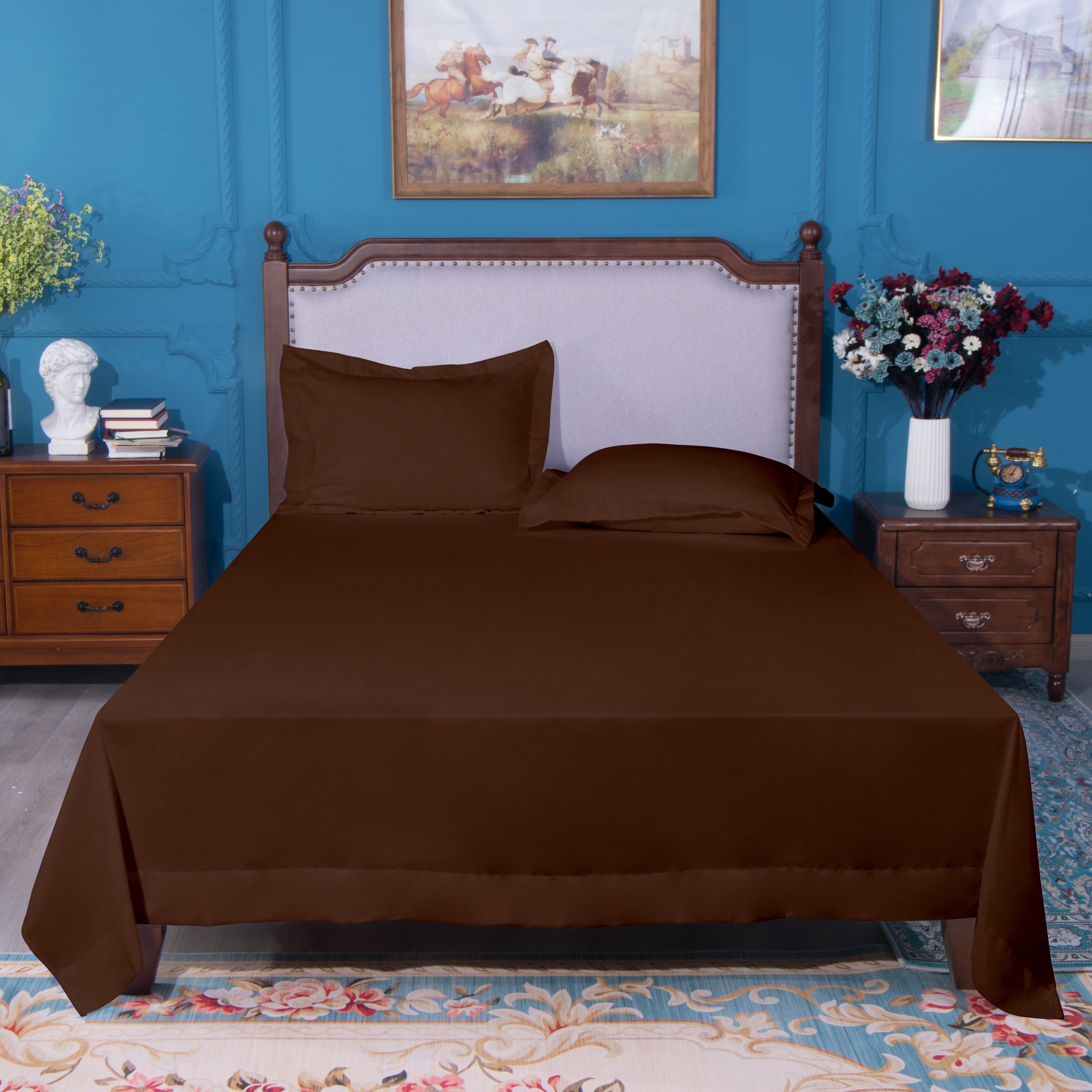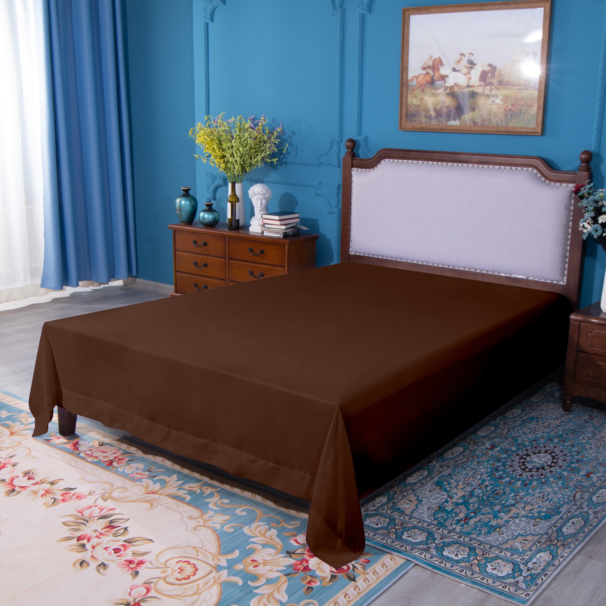 Microfiber Flat Sheet, Ultra-Soft and Durable, Wrinkle, Fade, Stain Resistant Top Sheet, Coffee