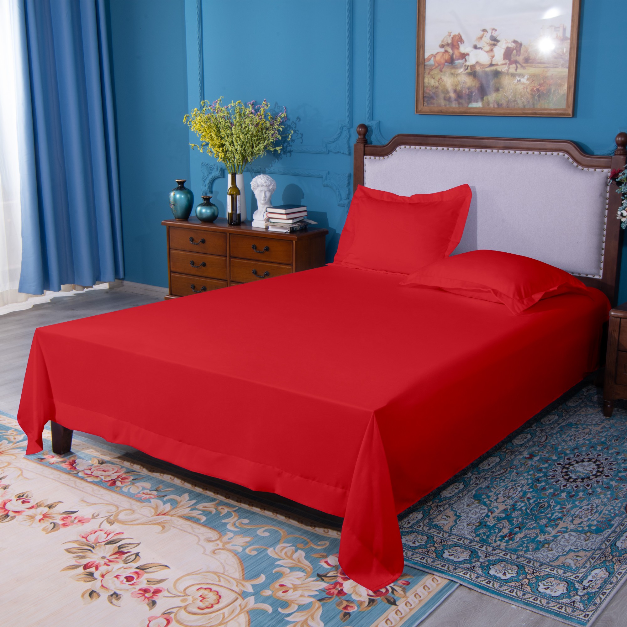 超细纤维床单,超柔软耐用,抗皱、抗褪色、抗污渍床单,红色