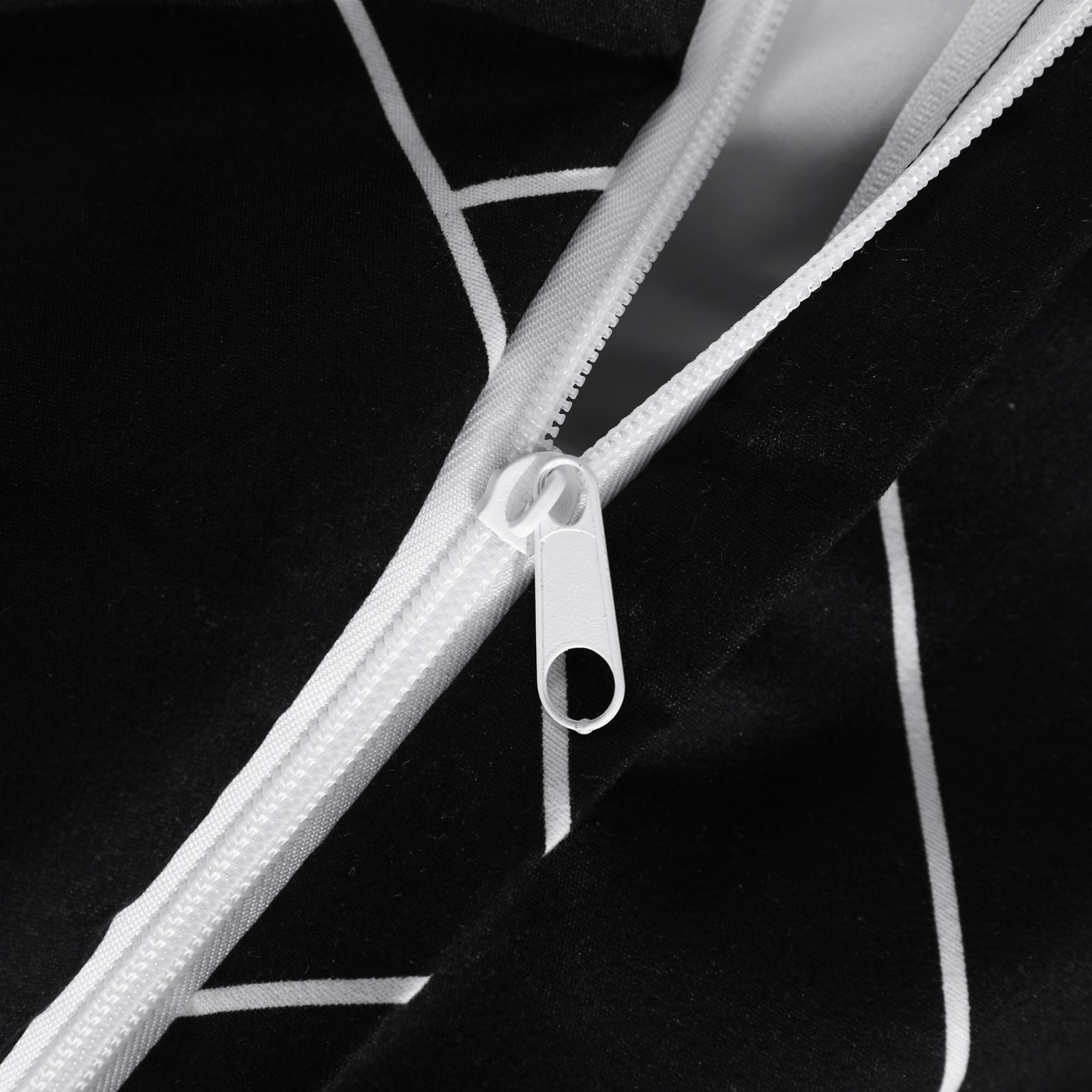 采用超细纤维面料,触感柔软顺滑,防污、抗皱且易清洁,运用活性印染技术,色彩鲜亮持久且不易褪色,能长期保持如新状态,提供持久的舒适睡眠体验。隐藏式双向拉链设计,方便轻松取放被芯;四角绑带设计,能有效固定被芯,防止移位。经典黑白印花设计,轻松适配现代、简约、北欧等多种家居风格。