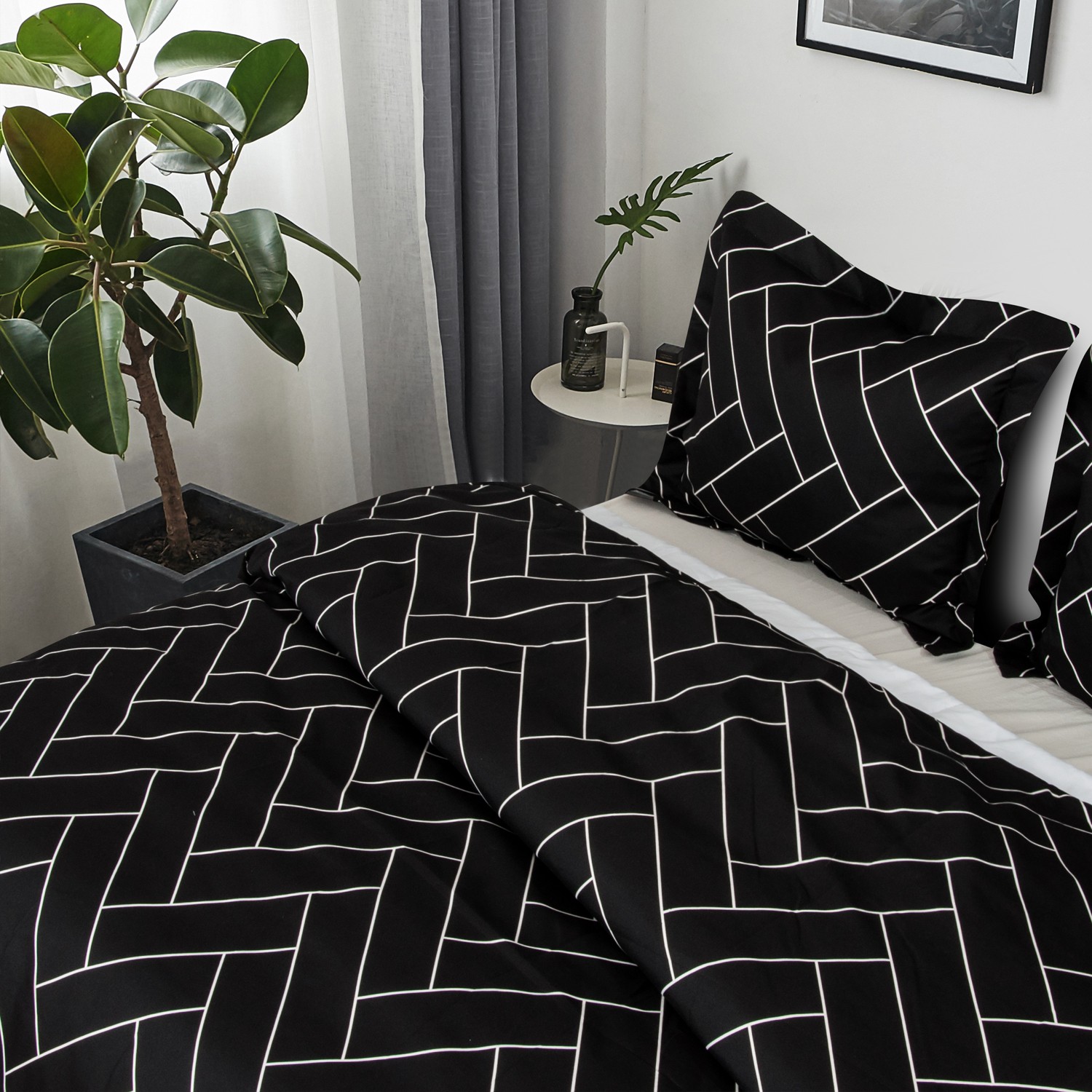 Microfiber Bedding Set, Brick Pattern Soft and Wrinkle-Resistant and Easy Care, Black and White
