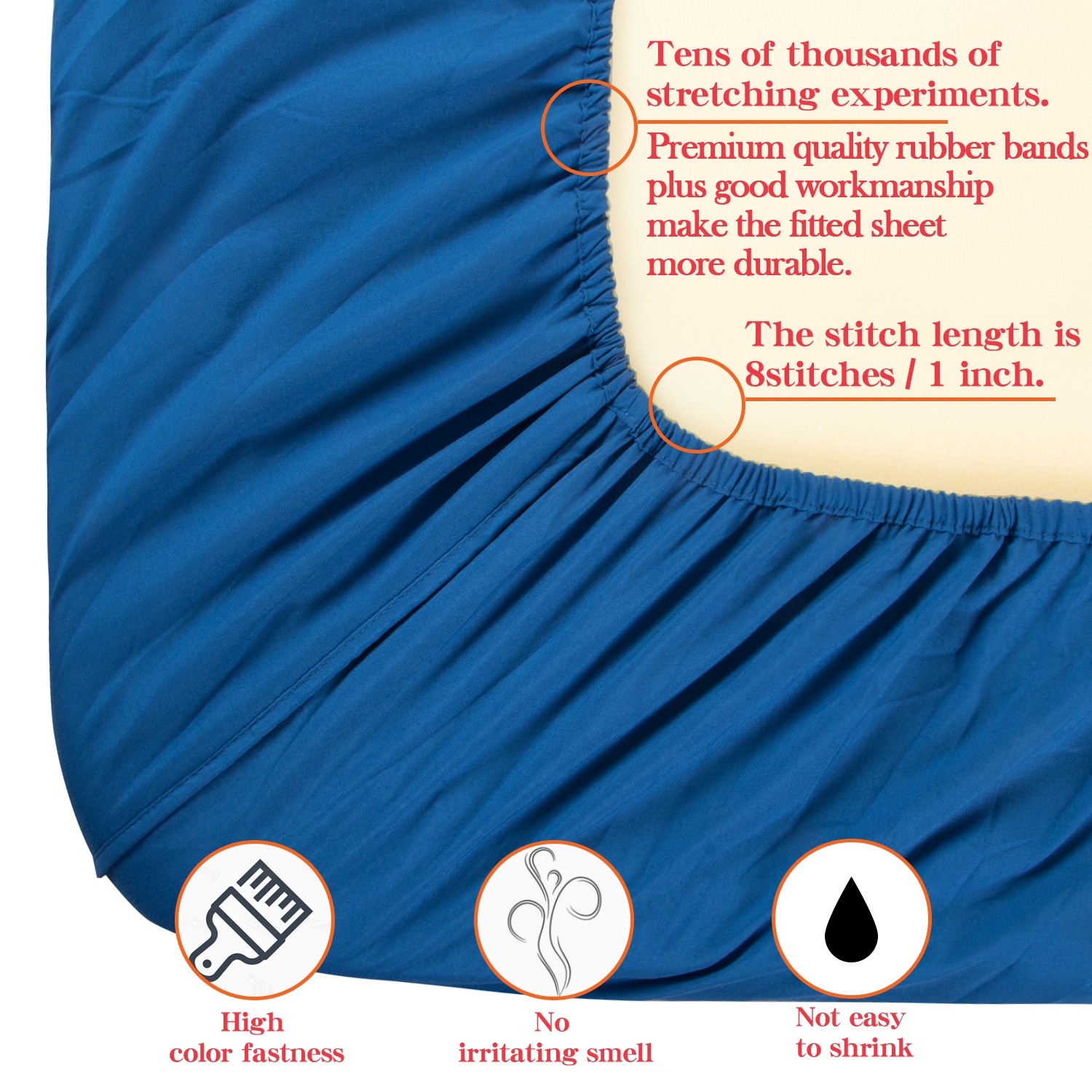 超细纤维床单套件,超柔软耐用,防皱、防褪色、防污,深袋装床单,宝蓝