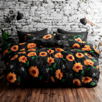 超细纤维床上用品,向日葵图案,柔软抗皱,易于打理,黑色 缺货