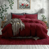 泡泡纱纹理床上用品,奢华柔软,经久耐用,酒红 缺货