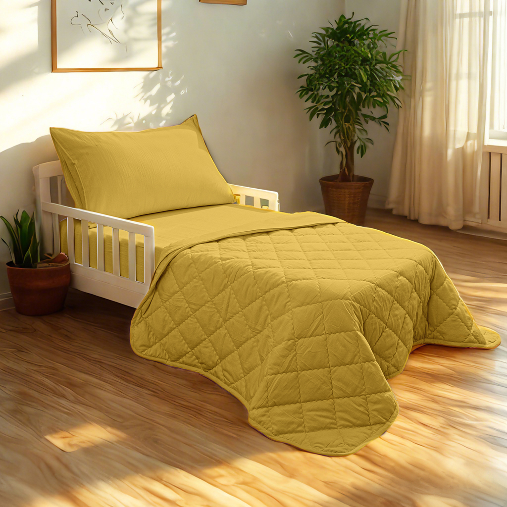 儿童床品套装: 1 被子(109厘米 x 152厘米), 1 床笠(71厘米 x 132厘米 + 20厘米), 1 床单(114厘米 x 152厘米), 1 枕套(51厘米 x 76厘米) (枕头不包含在内)